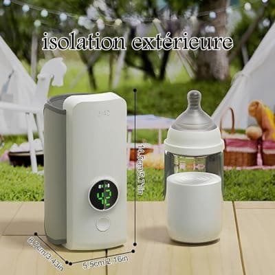 Sa grande capacité de batterie assure une chaleur plus stable et une isolation thermique longue durée. Voyant de température constante : insérez le biberon dans le chauffe-lait, allumez-le à 42 °C. Une fois que le voyant de température constante est allumé, vous pouvez retirer le biberon pour le boire ou préparer le lait.