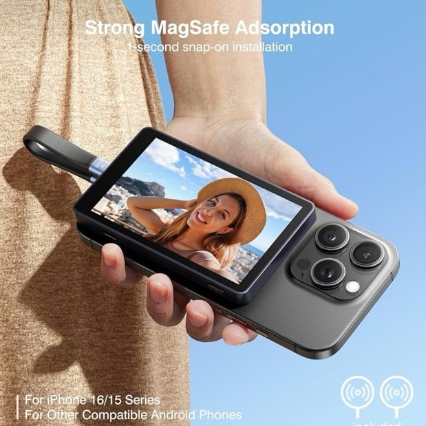 L’écran magnétique Magnetic Phone Vlog Selfie Monitor est conçu pour transformer la façon dont les selfies, les vlogs et les diffusions en direct sont capturés. Grâce à un système de partage d’écran en temps réel, cet écran de 4,02 pouces permet aux utilisateurs de voir la caméra arrière de leur téléphone pendant l’enregistrement, garantissant ainsi un contenu de haute qualité sans approximation. L’écran se fixe magnétiquement à l’arrière d’un iPhone, offrant une installation simple et sécurisée qui élimine le besoin de supports peu fiables ou d’accessoires encombrants. Que ce soit pour la création de contenu professionnel ou l’utilisation occasionnelle des réseaux sociaux, cet écran compact améliore la précision et l’efficacité.
